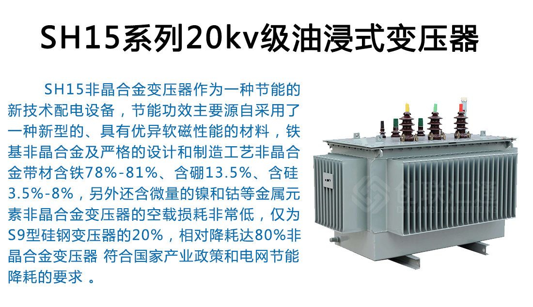 SH15非晶合金變壓器作為一種新一代節能產品,可以普遍適用于住宅小區、學校、工礦企事業單位以及社會公共設施??稍趹魞龋ㄍ猓┦褂茫萘吭?15kVA 及以下時可安裝在桿上,海拔高度不超過1000m。